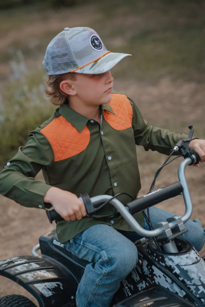Whether you're spending a weekend at the ranch or an evening at the rodeo, our Ranch Collection offers the perfect blend of style and performance. Made from UPF50+ stretch fabric for all-day comfort, these shirts feature built-in shoulder patches for added durability — ready for whatever the day brings.